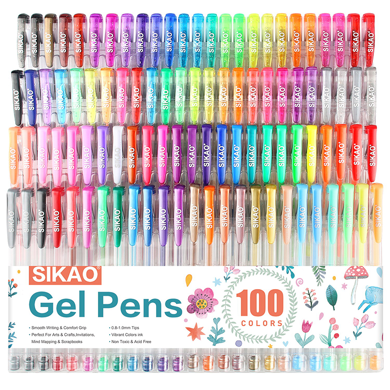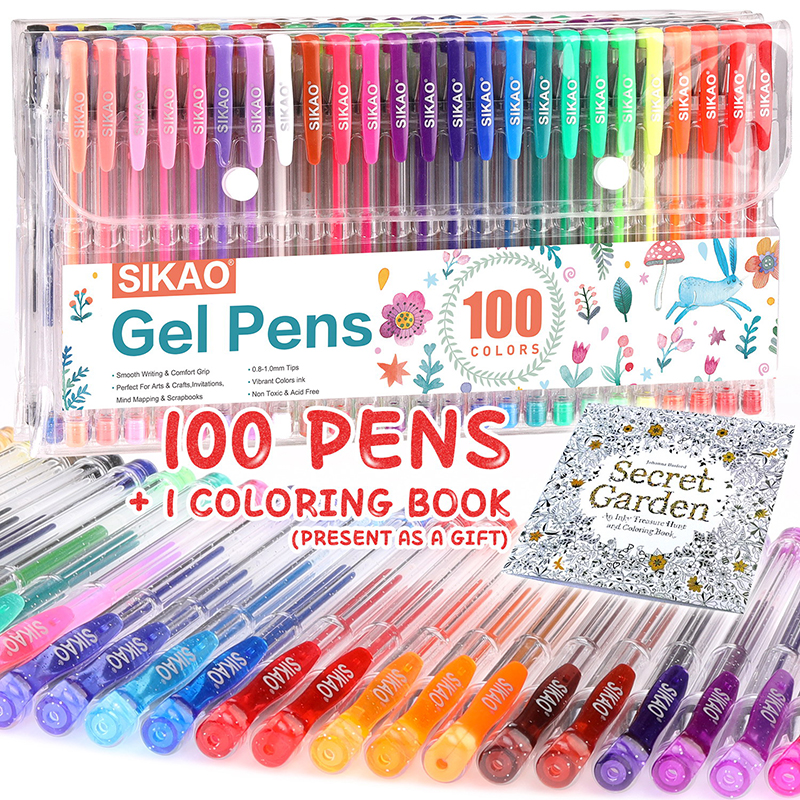 - RICH COLORS: SIKAO Coloring Gel Pens Set have 100 differents full color, So You Can Find a Color Match For Almost All Color Schemes. Ideal for adult book coloring, sketching, doodling, drawing, journaling, writing and all other diy decor art card designs.