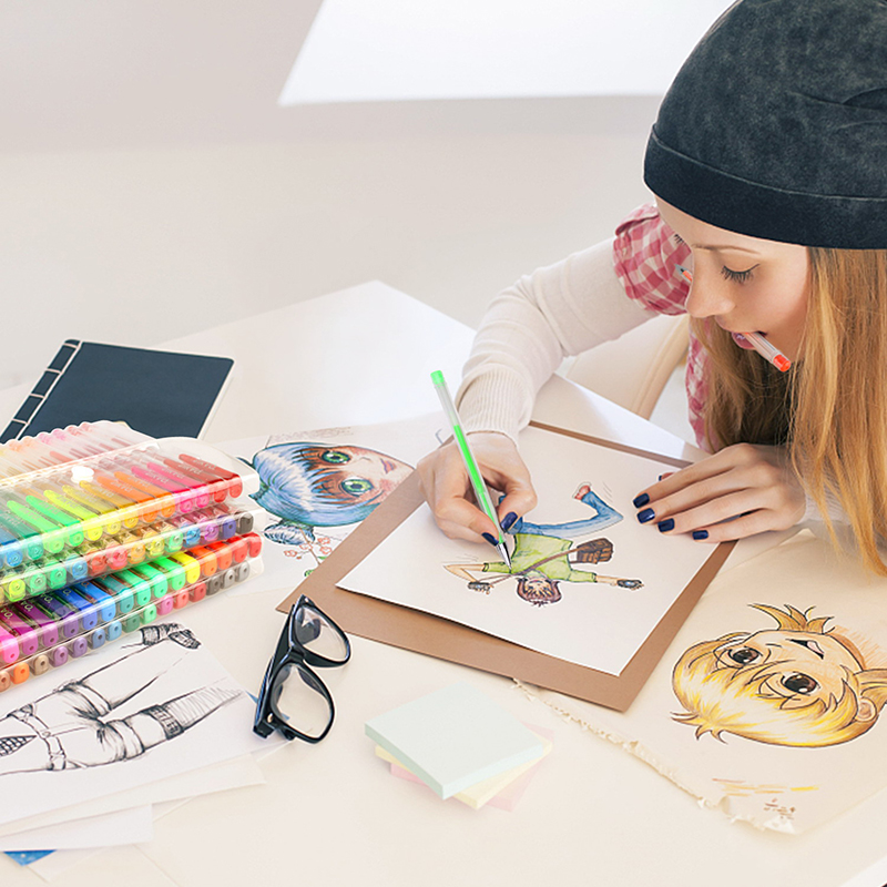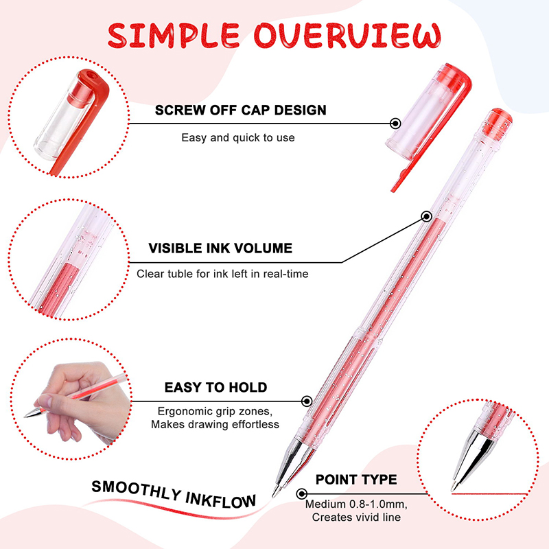 - Value: 100 colors gel pens in a big nice clear button bag, drawer-style packaging for easy extraction and easy portability, colors matched on cap and visible ink design bring easily choice to user. make a gift for children boys girls at halloween,christmas and any festival, enjoy the fun of coloring!